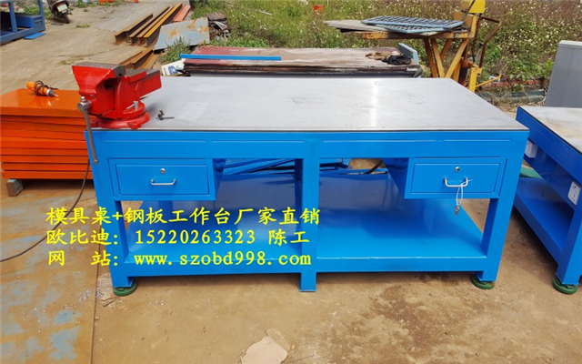 臺虎鉗重型鋼板桌車間鑄鐵維修鉗工臺實木桌面模具維修臺,東莞模具臺,珠海鋼板鉗工臺,鑄鐵鉗工臺鑄鐵鉗工制模工作臺 重型鋼板模具工作桌,鋼板模具桌,重型模具臺,飛模臺,省模臺,鐵板飛模工作臺,模具裝配工作桌,工作臺可配合掛板,上架,掛鉤及電器配件,組合各種不同的測試桌,并可以依據客戶之需求設計:打造特殊用途之工作臺,有效提高工作效力。